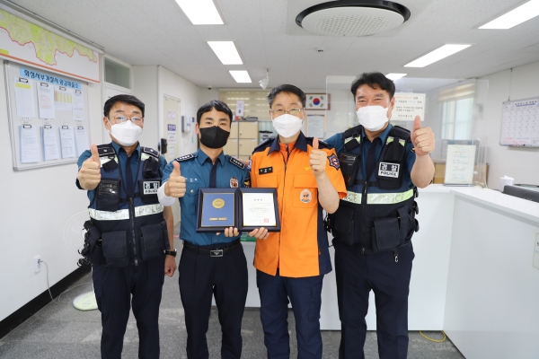 [충청뉴스큐] 화성소방서는 8월 1일 양감파출소에서 적극적 인명구조활동으로 귀중한 생명을 지키고 보호하는데 기여한 경찰관에게 하트세이버 인증서를 수여했다고 밝혔다.