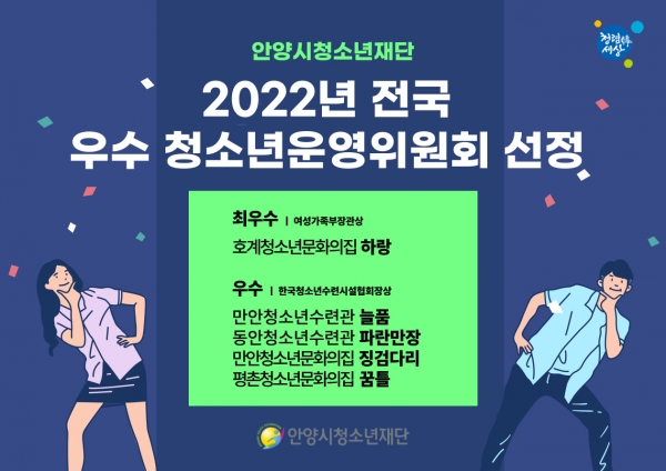 [충청뉴스큐] 안양시청소년재단 산하 5개 시설 청소년운영위원회가 2022년 전국 우수 청소년운영위원회로 선정됐다.