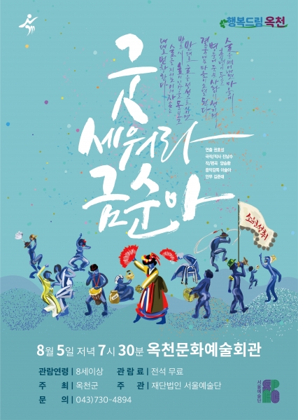 옥천군은 오는 5일 저녁 7시 30분, 문화예술회관에서 대한민국 창작공연의 산실 서울예술단을 초청해 창착 뮤지컬 ‘굿 세워라 금순아’를 공연한다고 밝혔다.