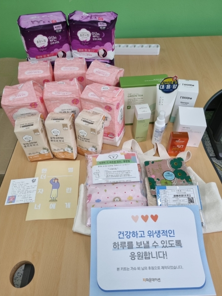 위생용품 키트는 6개월분의 생리대와 파우치, 찜질팩, 손소독제, 면 마스크, 기초화장품 등 총 14만원 상당의 물품으로 구성되어 있으며 학교 사회복지사를 통해 관내 200명의 학생들에게 8월 12일까지 전달할 계획이라고 전했다.