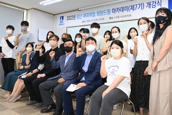수원시는 3일 오전 10시 팔달구 수원시사어학원에서 ‘2022년 청년 해외취업 희망드림 아카데미’ 제7기 교육 개강식을 열었다.