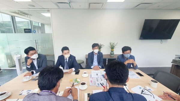 [충청뉴스큐] 경기도의회 문승호, 최만식, 전석훈, 국중범 의원이 4일 오전 판교에 위치한 코리아 경기도주식회사를 방문했다.