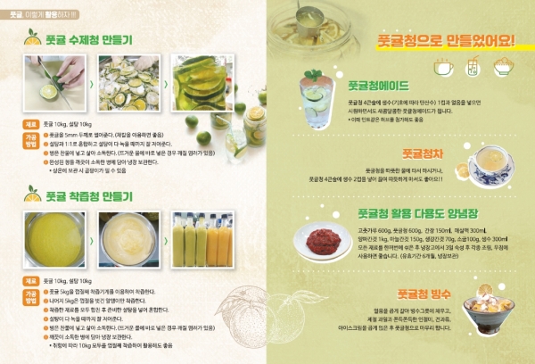 농업기술원은 풋귤의 기능을 알리고 풋귤과 풋귤청을 활용한 다양한 레시피를 소개해 소비 확대를 도모하고자 한다.
