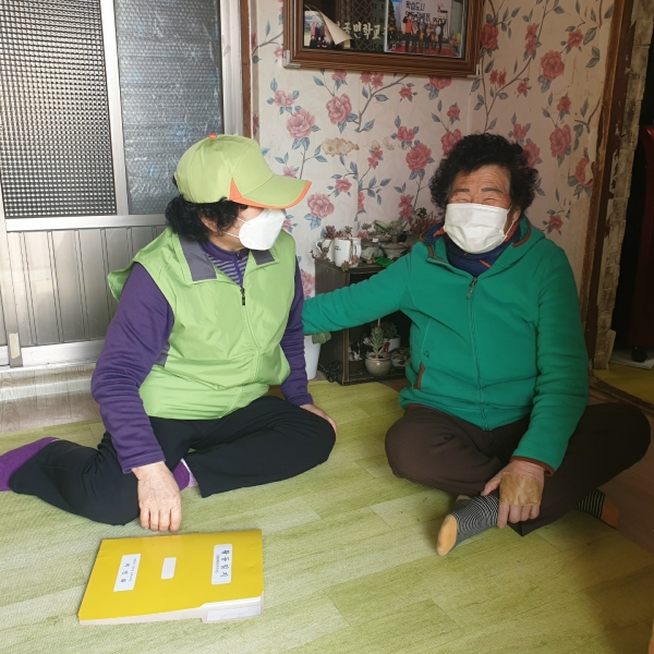 지속되고 있는 코로나19로 참여자 활동이 제한됨에 따라, 수요자가 우울감과 외로움에서 해어날 수 있도록 정기적으로 수요자 가정을 방문해 대상노인의 건강상태를 확인하고 보살핌으로써 큰 호응을 받고 있다.
