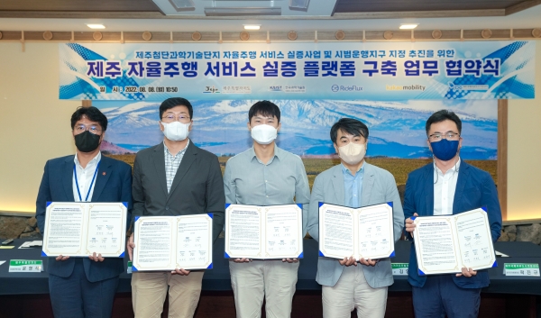 [충청뉴스큐] 제주특별자치도는 자율주행 실증 플랫폼 구축사업을 통한 신산업 기반 마련 및 일자리 창출, 기업 육성을 위해 도내 유관기관 및 민간기업과 업무협약을 8일 체결했다.