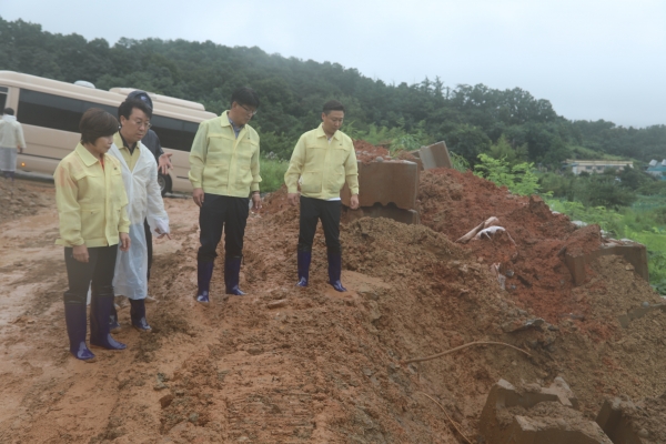 이날 현장 곳곳을 둘러본 이동령 의장은 “그동안 내린 많은 비로 지반이 약해져 산사태·침수 피해 발생이 우려된다”며 “앞으로도 며칠간 충청권에 많은 양의 비가 예상되니 지역주민에게 피해가 발생하지 않도록 상습 침수지역 순찰 등 예방활동에 최선을 다하도록 관계 공무원께 당부드린다”고 말했다.