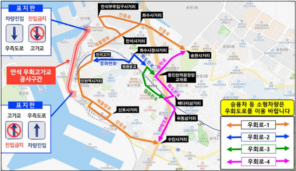 인천광역시는 ‘만석 우회고가교’의 본선구간 철거공사가 시작되는 8월 25일 오후 1시부터 고가교에 대한 차량 진·출입 통제를 실시한다고 밝혔다.