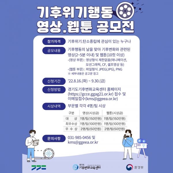 [충청뉴스큐] 경기환경에너지진흥원이 ‘제1회 기후위기행동 영상·웹툰 공모전’을 열고 다음 달 30일까지 공모작을 접수한다.