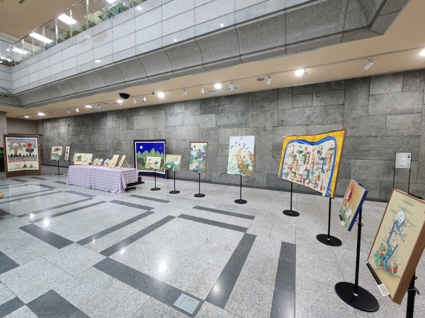 ‘장막 책가도’, ‘가응도’, ‘달빛 정원’, ‘모란과 금조’, ‘모란꽃 필 때’ 등 민화 작품 29점을 선경도서관 1층 중앙홀에 전시한다.