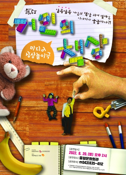 또한 오는 8월 20일 오후 2시에도 미디어 상상놀이극 ‘거인의 책상’ 공연이 개최될 예정으로 집채만큼 커진 우리 주변의 사물을 설정해 상상적 체험과 마술 같은 장면을 연출할 예정이며 공연 중간중간 관객이 적극적으로 참여할 수 있는 요소로 재미를 더할 전망이다.