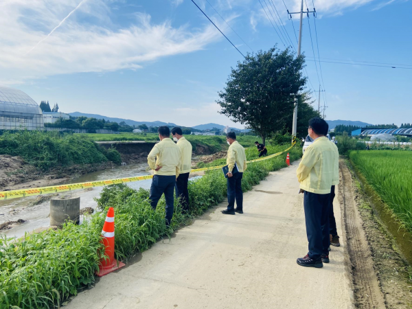군은 지난 8일부터 12일까지 3일간 200mm가 넘는 비가 내려, 호우경보 발령에 따른 비상2단계 비상체계를 운영하는 등 본부장을 주재로 재안안전대책 본부 운영 및 각 부서의 사전 예찰 활동을 강화해 대규모 피해를 줄일 수 있었다.
