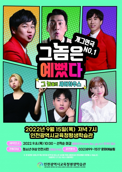 [충청뉴스큐] 인천광역시교육청평생학습관은 9월 15일 저녁 7시 ‘그놈은 예뻤다’ 공연을 개최한다.