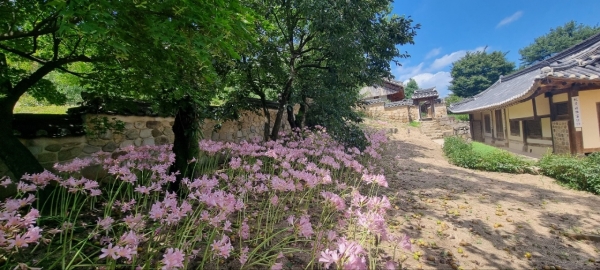 추사고택은 상사화 이전에도 수선화, 능수화 등 계절에 맞는 다채로운 꽃을 식재해 고택의 아름다움을 배가시키고 있다.