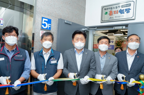 이날 개소식에는 오영훈 제주도지사, 강상수 제주도의회 문화관광체육위원회 위원, 양영수 민주노총 제주본부 부본부장, 안용남 북부광역환경관리센터노동조합 위원장, 고을선 학교비정규직노조 제주지부장을 비롯해 노사단체 및 이동노동자 관계자 30여명이 참석했다.