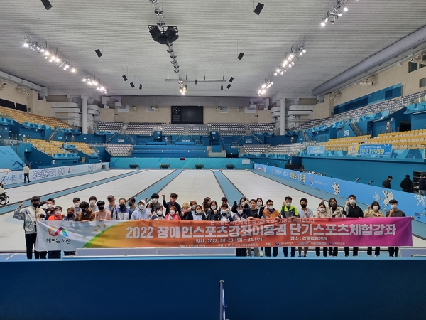 [충청뉴스큐] 충남 서산시가 지난 23일부터 24일까지 강원도 강릉시 강릉컬링센터에서 진행한 '2022 장애인스포츠강좌이용권 단기스포츠 컬링체험 강좌'를 성황리에 마쳤다고 밝혔다.