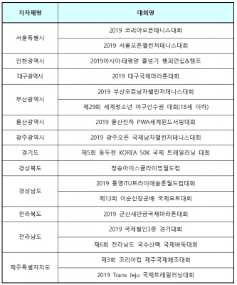 이번 심사에서 선정된 경상북도 ‘청송아이스클라이밍월드컵’, 전라남도‘2019 국제철인3종 경기대회’는 국비 지원 이후에 꾸준히 성장하고 있는 대회로서 인지도 역시 상승하고 있다. 신규로 선정된 기장군 ‘29회 세계청소년 야구선수권 대회’, 제주특별자치도 ‘2019 제주국제트레일러닝대회’는 이번 국비 지원이 발전 가능성을 키워나갈 수 있는 계기가 될 것으로 보인다.