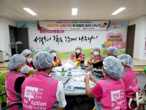 [충청뉴스큐] 제천시종합자원봉사센터는 8월 30일 센터 교육장에서 추석맞이 송편 빚기 행사를 실시했다.