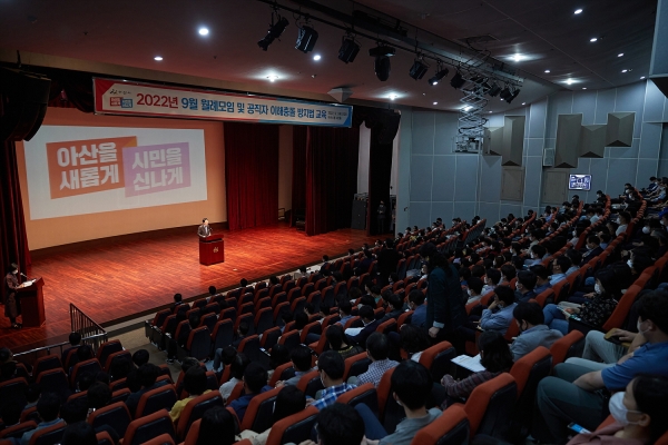 이번 월례 모임은 공무원 헌장 낭독, 유공자 시상, 박경귀 시장 인사말 순으로 진행됐으며 모임 후 공직자 이해충돌 방지법 특강이 이어졌다.
