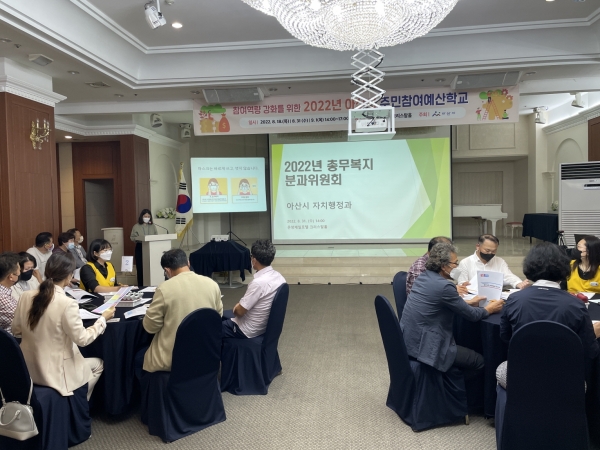 [충청뉴스큐] 아산시가 8월 31일과 9월 1일 이틀간 온양제일호텔에서 2023년 주민참여예산 선정을 위한 분과위원회를 개최했다.