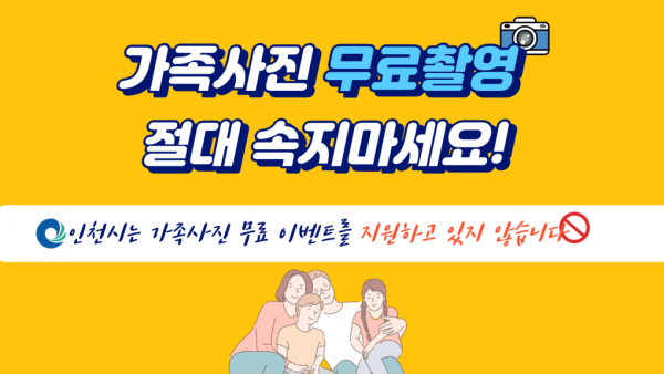 [충청뉴스큐] 인천광역시가 인천시민을 대상으로 하는 ‘무료 가족사진 촬영’과 ‘제주무료 여행’등 허위 과장 광고로 인한 시민들의 피해가 잇따르자 이에 대한 주의를 당부했다.