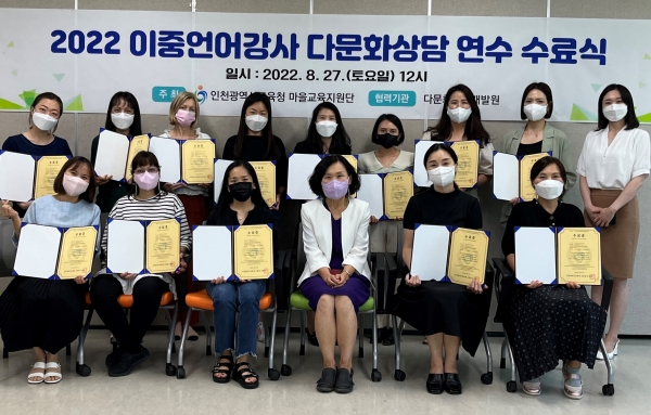이번 이중언어강사 다문화상담연수는 인천으로 이주한 외국인으로 이중언어가 가능한 강사 또는 통·변역사 18명이 참여했으며 다문화상담 과정이수자는 상담 통역 지원을 통해 다문화학생과 한국 상담사 사이에 언어 및 문화차이로 인한 소통의 어려움을 해소할 것으로 기대된다.