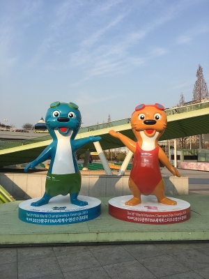 [충청뉴스큐] 2019광주세계수영선수권대회 D-150일을 앞두고 본격적인 붐업조성과 국민들의 관심도 제고를 위해 대형 마스코트 조형물이 세워진다.