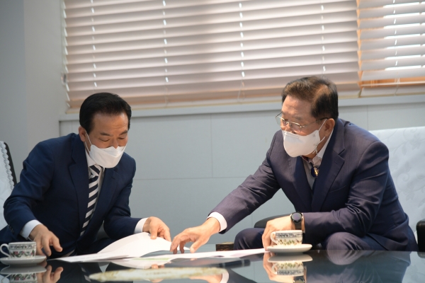 [충청뉴스큐] 백성현 논산시장이 우동기 국가균형발전위원장을 만나 더불어 잘사는 국가균형발전의 차원에서 논산에 방위산업 시설이 유치됨이 마땅하다고 건의했다.