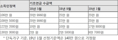 그런데, 소득인정액 구간에 따라 2만 원 단위로 감액하는 현행 방식에 따르면 소득이 소폭 상승하면 감액구간이 변동되어 기초연금액이 2만 원씩 감액될 수 있다.