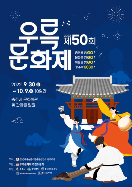 [충청뉴스큐] 한국예총 충주지회는 오는 9월 30일부터 10월 9일까지 충주시 문화회관 및 관아골 일원에서 ‘2022 제50회 우륵문화제’를 개최 한다고 밝혔다.