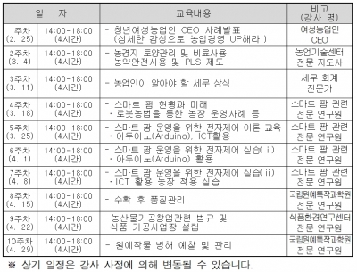 대전 농업 발전을 주도할 청년농업인의 소득 10% 향상을 목표로 실시되는 이번 교육은 토양관리 및 비료사용법 수확 후 품질관리 스마트 팜 운영을 위한 전자제어 농업인의 알아야 할 세무 상식 등을 주 내용으로 실시된다.
