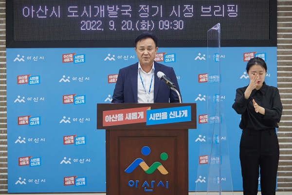 [충청뉴스큐] 20일 김문수 아산시 도시개발국장은 브리핑을 통해 ‘중부권 새로운 성장거점, 고품격 스마트도시 아산’ 조성을 위해 아산시에서 역점 추진하고 있는 ‘2040 아산도시기본계획’ 수립, ‘도시개발’과 ‘원도심 도시재생’, ‘문화·여가·복지 인프라 구축을 위한 공공건축물 건립’ 총 4개의 사업분야에 대한 입장을 밝혔다.