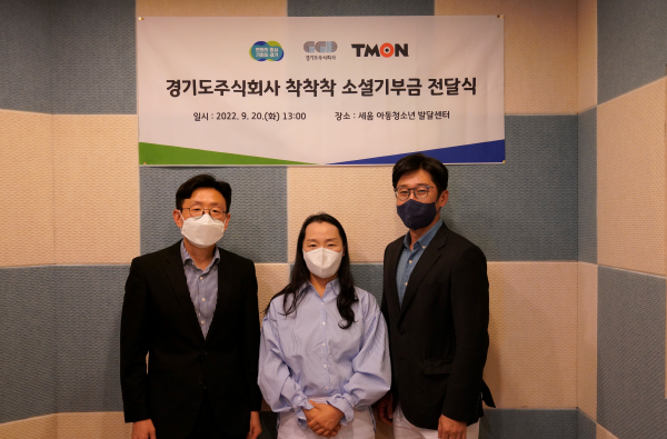 이번 기부금은 경기도주식회사가 티몬과 함께 경기도 사회적가치 생산품 공동브랜드 착착착 제품을 판매한 후 발생한 수익금의 일부로 발달장애 아동의 사회적응 및 돌봄 치료 등을 위해 쓰일 전망이다.