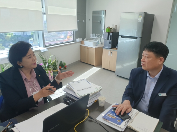 정윤경 의원은 실질적인 사업 추진방안을 검토하고자, 20일 주무부서인 경기도청 조태훈 평생교육과장과 ‘경기도에 위치한 서울특별시남부기술교육원의 경기도민 접근성 제고 및 시설물 활용 계획’에 대한 논의의 시간을 가졌다.