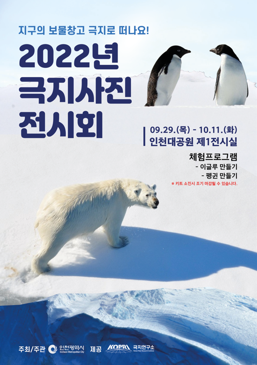 [충청뉴스큐] 인천광역시는 ‘2022년 극지 사진전 및 체험행사’를 오는 9월 29일부터 10월 11일까지 인천대공원 전시실에서 개최한다고 밝혔다.