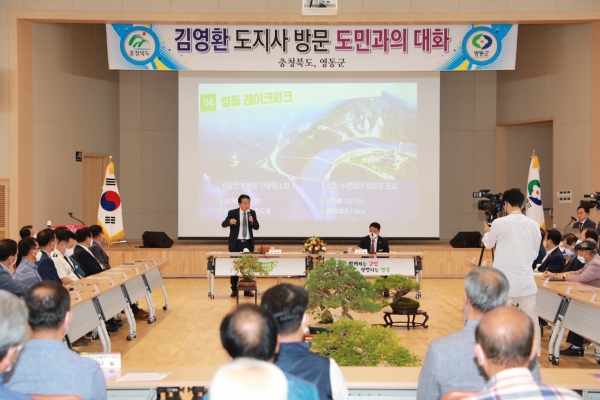지난 20일 취임 후 첫 도정보고회로 영동을 찾은 김영환 충북도지사가 도민과의 대화 자리에서 세계국악엑스포 유치에 적극 지원하겠다는 입장을 밝혔다.