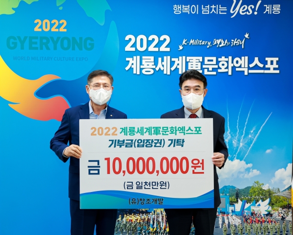 [충청뉴스큐] 계룡시는 창조개발이 ‘2022계룡세계軍문화엑스포’ 성공 개최를 위한 입장권 구매 행렬에 동참했다고 전했다.