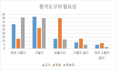 설문조사는 지난 14일부터 24일까지, 11일 동안 학생, 학부모, 교사 대상 온라인시스템으로 진행됐으며 설문 문항은 평가도구의 필요성 강원도형 평가도구의 필요성 평가도구의 활용 시기 및 방법 성취기준과 성취수준의 활용 현황 및 필요성의 4가지 영역이다.