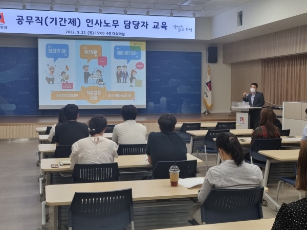 [충청뉴스큐] 안성시는 공무직·기간제근로자 등 인사노무관리 담당자를 대상으로 노동법령 관련 교육을 지난 22일 실시했다고 밝혔다.