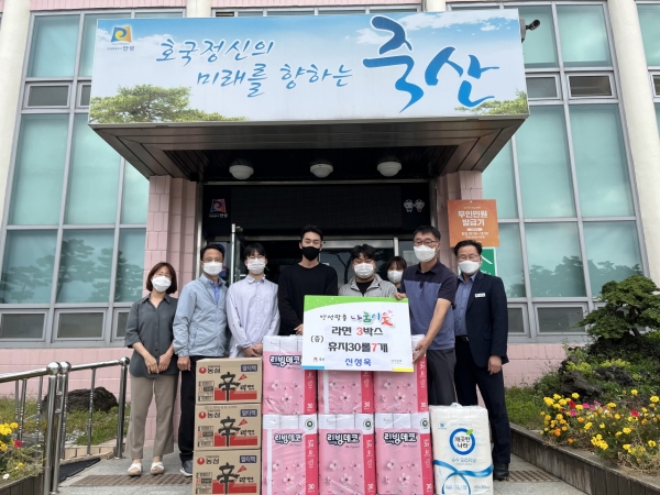 [충청뉴스큐] 안성시 죽산면에 거주하는 신성욱 씨가 지난 23일 지역의 소외된 이웃에 전달해 달라며 죽산면사무소에 라면 3박스와 휴지 30롤 7개를 기탁했다.