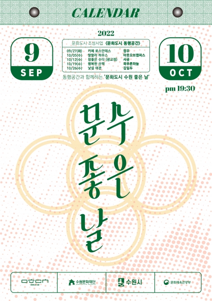 [충청뉴스큐] 수원문화재단 문화도시센터는 일상문화공간인‘동행공간’에서 9월 27일부터 10월 26일까지 매주 ‘문수 좋은 날’ 공연 프로그램을 추진한다.