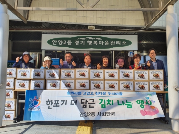 [충청뉴스큐] 지난 27일 안양2동 청소년지도협의회에서는 안양2동 특수시책인 ‘함께라면 고맙고 정다운 우리마을 만들기’를 위한‘한포기 더 담근 김치 나눔’ 사업으로 배추김치 25통을 안양2동 행정복지센터에 기탁했다.