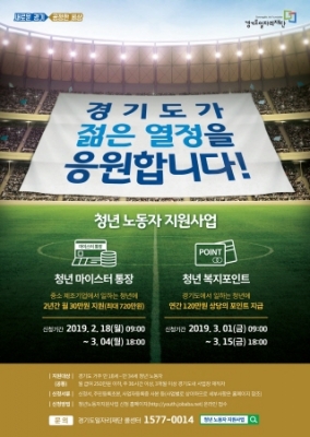 [충청뉴스큐] 경기도는 ‘일하는 청년 복지포인트’와 ‘일하는 청년 마이스터 통장’으로 구성된 ‘2019년 경기 청년노동자 지원사업’ 대상자를 신규 모집 한다고 11일 밝혔다.