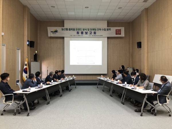 [충청뉴스큐] 예산군은 지난 9월 29일 농특산물 유통·마케팅 활성화 사업 자문위원과 실무추진단 14명이 참석한 가운데 예산군 농특산물 공동브랜드인 ‘예가정성’의 브랜드 가치 제고를 위한 ‘농산물 품목별 트렌드 분석 및 마케팅 전략 수립 용역 최종보고회’를 개최했다.