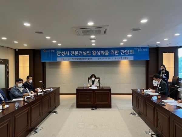 [충청뉴스큐] 안성시는 지난 5일 안성시청 회의실에서 대한전문건설협회 경기도회 안성시 운영위원회와 관내 전문건설업 발전을 위한 간담회를 개최했다.