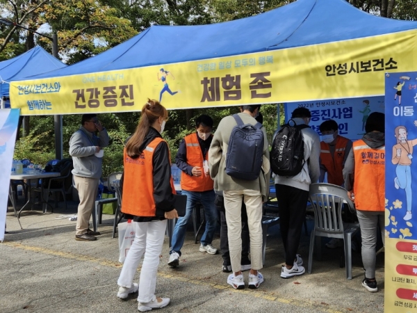 금연·절주, 구강 보건, 정신건강, 감염병 예방 등 건강생활실천을 위한 분야로 구성된 이번 캠페인은 각 분야와 관련된 배너 설치 및 홍보물품 배부 등을 통해 축제에 참여한 학생과 안성시민들을 대상으로 건강 정보서비스를 제공했다.