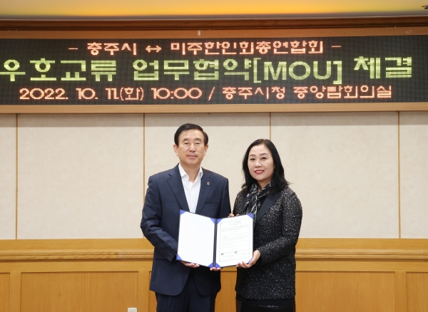 [충청뉴스큐] 충주시는 11일 시청 중앙탑회의실에서 미주한인회총연합회와 우호교류 업무협약을 체결했다.