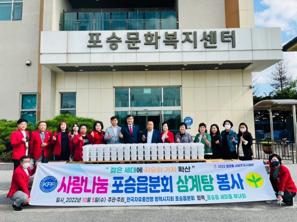 [충청뉴스큐] 한국자유총연맹 평택시지회 포승읍분회가 지난 5일 포승읍 문화복지센터에서 ‘사랑 나눔 삼계탕 봉사’를 실시했다고 밝혔다.