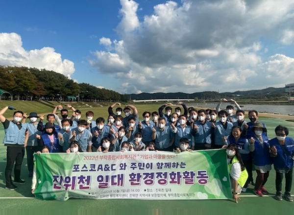 이번 활동은 부락종합사회복지관에서 주관하는 ‘2022년 기업과 마을을 잇다’ 협력사업의 일환으로 진행됐으며 진위면 지역사회보장협의체 위원 10명과 ㈜포스코A&C 임직원 30명 등 40여명이 참여한 가운데 진위천 유원지 내 아직 수해 복구가 이루어지지 않은 곳에서 대대적 환경정비 활동을 펼쳤다.