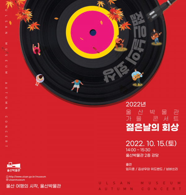 [충청뉴스큐] 울산박물관은 2022년 문화의 날을 맞아 10월 15일 오후 2시 박물관 2층 강당에서 가을콘서트 ‘젊은날의 회상’을 개최한다고 밝혔다.
