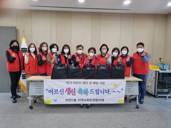 또한, 이연준 비전1동장은 “비전1동 지역사회보장협의체 위원님들이 정성들여 준비한 생신 상을 받으시고 좋아하시는 어르신을 보니 뿌듯하고 기쁨을 나눌 수 있는 것에 감사드리며 앞으로도 위원님들과 다양한 사업으로 지역의 관심이 필요한 이웃을 돌볼 수 있도록 노력하겠다”고 전했다.
